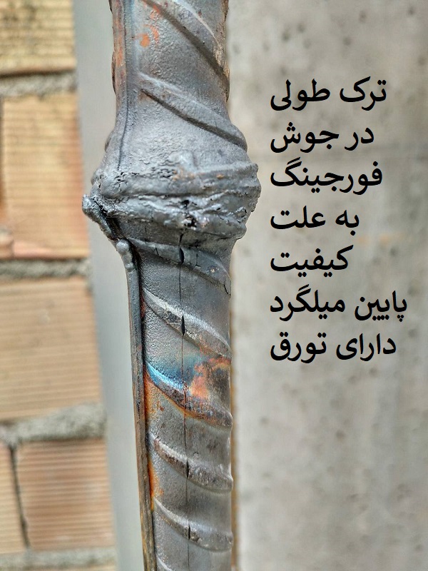 یکی از مهمترین دلایل شکست و ترک در جوش فورجینگ، کیفیت پایین میلگرد تولید شده است. برخی نکات مهم عبارتاند از: